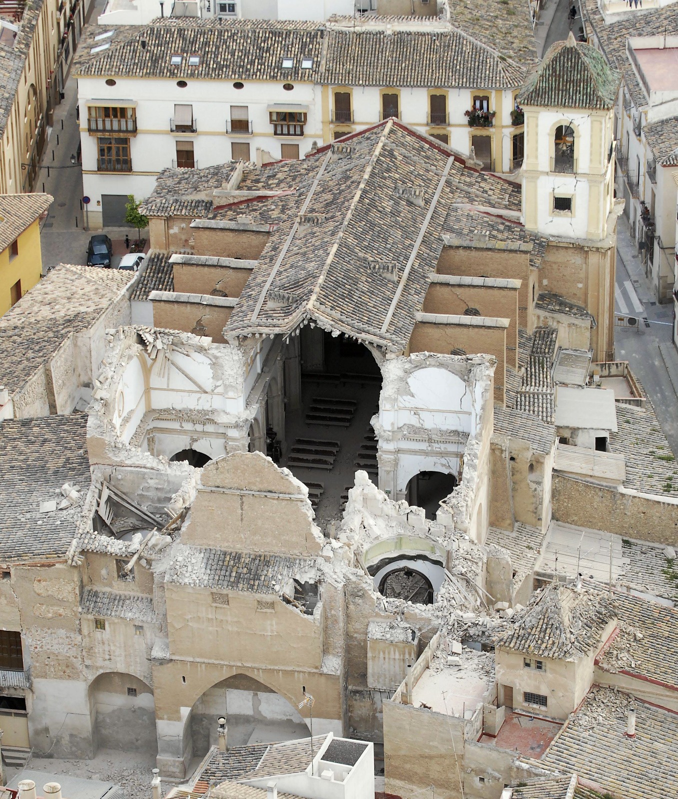 Esa primera construcción tuvo casi tres siglos de vida, de 1470 a 1745 aproximadamente Los movimientos sísmicos que se dan en esta zona influyen negativamente en la estructura arquitectónica de la iglesia. Tiene especial repercusión el de 1674 que le afectó de forma considerable. Se reestructura y se enriquece con nuevas edificaciones, pero a mediados del siglo XVIII amenazaba ruina. Es Parroquia que está en lo llano de la Ciudad y de gran concurso por estar vecina a la Plaza más principal. Es de nave de especial elevación y proporcionada anchura. Se dedicó este hermoso Templo a nuestro gran Patrono Santiago, estando inmediata la antigua "Alhama de los judíos". Así se expresa el Padre Morote, ilustre historiador lorquino en su obra: "Blasones y Antigüedades de la Ciudad de Lorca", escrita en 1741. Sobre la antigüedad de la Iglesia Parroquial de Santiago de Lorca, Francisco Escobar dice que es del siglo XV al XVI, levantada en el mismo sitio donde hubo una antigua Capilla dedicada al Santo Patrón de España. Nos referimos no a la iglesia actual, sino a la antigua, cuya construcción ha de fijarse a mediados del siglo XVI. Los libros bautismales arrancaban de 1575. Esta primera iglesia de Santiago tuvo unos dos siglos de vida (de alrededor de 1560 a 1745). Respecto al actual Templo de Santiago: Encontrándose la anterior en lamentable estado de ruina, cuya obra reconocieron varios maestros de Murcia y Lorca, en 1745, se dictaminó la necesidad de reedificarla. Se procedió a la demolición del antiguo edificio, y se comenzó la edificación del nuevo bajo la dirección de Pedro Pagán, maestro alarife, nombrado por el Obispo de esta Diócesis de Cartagena. El 31 Diciembre de 1745, en la tarde, se puso la primera piedra de la actual iglesia de Santiago, en "el primer poste de la capilla mayor del lado de la epístola". Las obras de construcción se prolongaron a lo largo de 36 años. La dirección de la misma corrió a cargo del arquitecto Pedro Pagán hasta 1751. Después otros maestros la dirigieron hasta su finalización o hasta que la iglesia estuvo dispuesta para ser abierta al culto. El 14 de Noviembre de 1781, con grandes fiestas , fue consagrado el nuevo templo de Santiago Apóstol de Lorca y abierto al culto de los fieles. Se predico un solemne Sermón por el Dr. Don Francisco Antonio Alemán y Fort el cual se imprimió en la imprenta de Francisco Benedito, sita en la Platería de Murcia. Esta parroquia se ha visto afectada en diferentes ocasiones por varios incendios, uno de los más notables fue el que sucedió a principios del siglo XX. La noche del 29 de abril de 1911 se produjo un incendio de modo que de 1911 a 1915, como consecuencia del mismoo se interrumpió el culto en dicha parroquia. La reparación que se realizó no fue muy acertada, ya que en su mayor parte no se respetaron los esquemas anteriores. Ese incendio causo estragos de muy difícil reparación, ya que no solo afectó al inmueble, sino también a su contenido, los bienes muebles. Un ejemplo digno de mencionar es que durante dicho incendio la escultura de Santiago a caballo, del escultor Roque López, fue destruida En nuestra contienda civil de 1936-1939, fue destruida, incendiándola con todas sus antiguas imágenes, archivo parroquial y demás enseres antiguos. Se reconstruyó a partir de 1940 y se procedió a levantar la actual Torre. El 14 de Noviembre de 1981, se celebraron los 200 años con solemnes celebraciones, presidiendo la Eucaristía y otorgando la Confirmación el Excmo. y Rvdmo. Sr. D. Javier Azagra Labiano, obispo de la Diócesis. De 1993 a 1994 hubo que levantar y restaurar toda la cubierta y también se procedió a pintar de nuevo el templo con los colores, ya desvaídos, que tenía. El dia 11 de mayo de 2011, sobre las cinco y media de la tarde, Lorca se vio afectada por dos terremotos de fuerte intensidad. Toda la ciudad quedó muy afectada, nueve víctimas mortales, cientos de heridos y numerosos edificios y viviendas, cuando no caídas, fuertemente afectadas. La iglesia de Santiago fue muy afectada, Cayó un cuerpo de la nave central, todos los cuerpos del crucero y la cúpula. El resto del edificio se mantuvo en pie, pero en un estado de semi ruina. El párroco, Eduardo Sánchez Carrasco acudió al Obispado, y junto con la Conferencia Episcopal y un gran número de parroquias de toda España, se procedió a la redacción de un proyecto de reedificación del templo a cargo del arquitecto don Juan de Dios de la Hoz y de la empresa constructora Lorquimur. Tras cuatro años de trabajos, el templo recobró su estado inicial y el esplendor que le caracterizada. Se reabre al culto el día 9 de mayo de 2015 con la celebración de una Santa Misa presidida por el Señor Cardenal don Antonio María Rouco Varela, expresidente de la Conferencia Episcopal, ayudado por don José Manuel Lorca Planes, Obispo de la Diócesis de Cartagena y por don Eduardo Sánchez Carrasco, párroco de Santiago. |